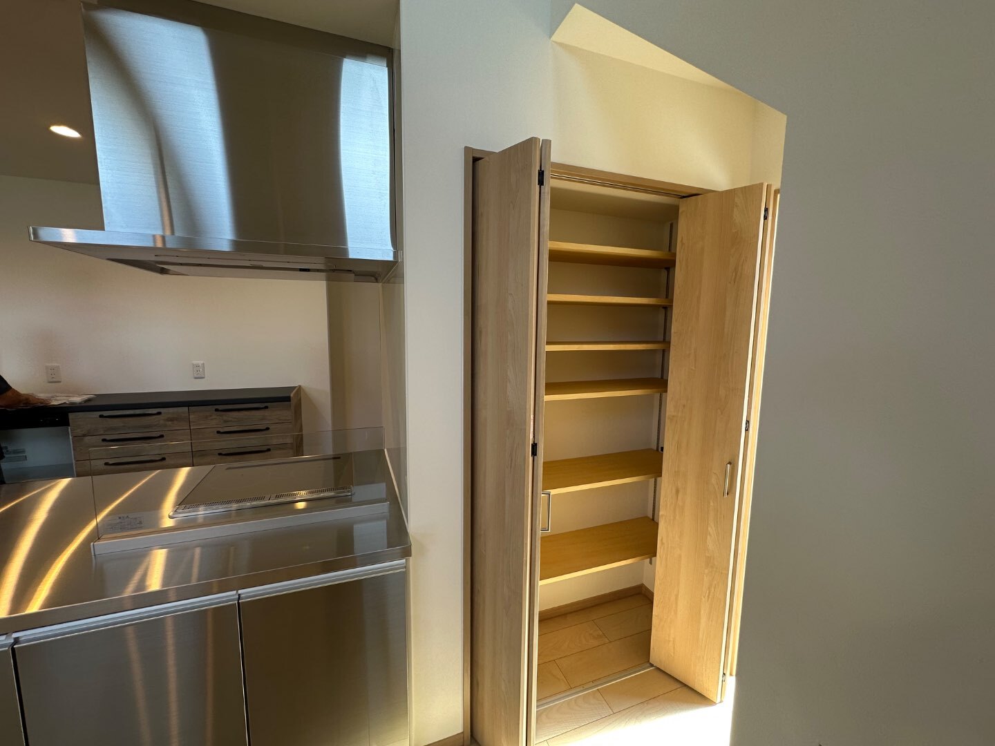 キッチン横には、食品や日用品を収納できるパントリーを設けました。
