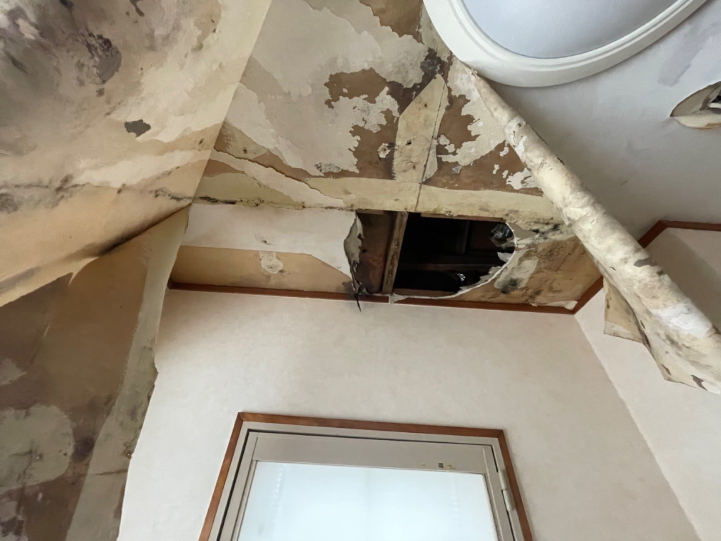 屋根瓦の割れから雨漏りが発生していましたが、事前に屋根の補修は完了しており雨漏りが無い事が確認されたので内装補修してきました😁