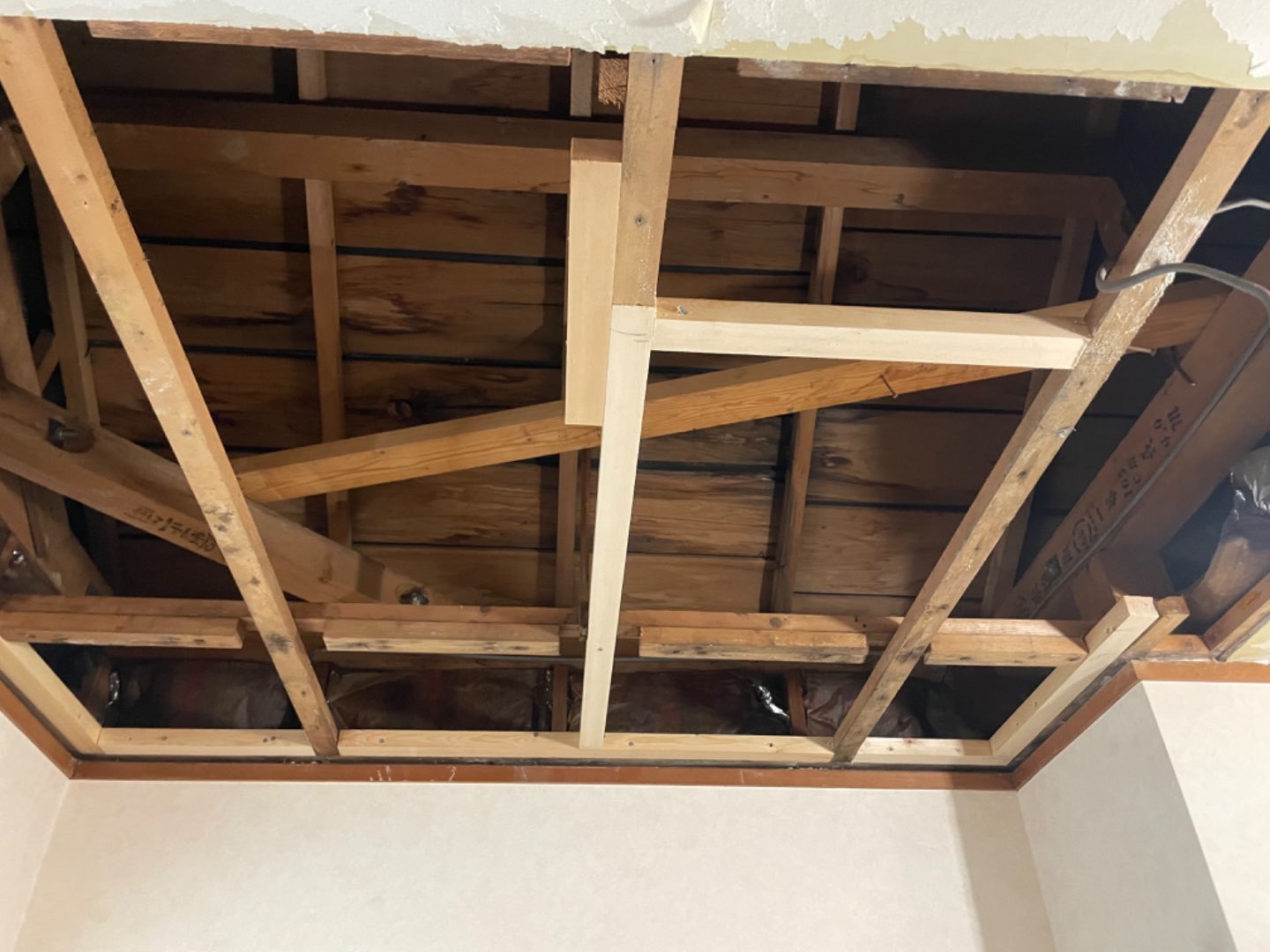 弊社では雨漏りの原因を補修した後すべてを治すと再度内装に被害が出る可能性がある為(雨漏りはそれだけ原因がわからない事もあります💦)少し時期を空けて内装補修する事をオススメしております😔