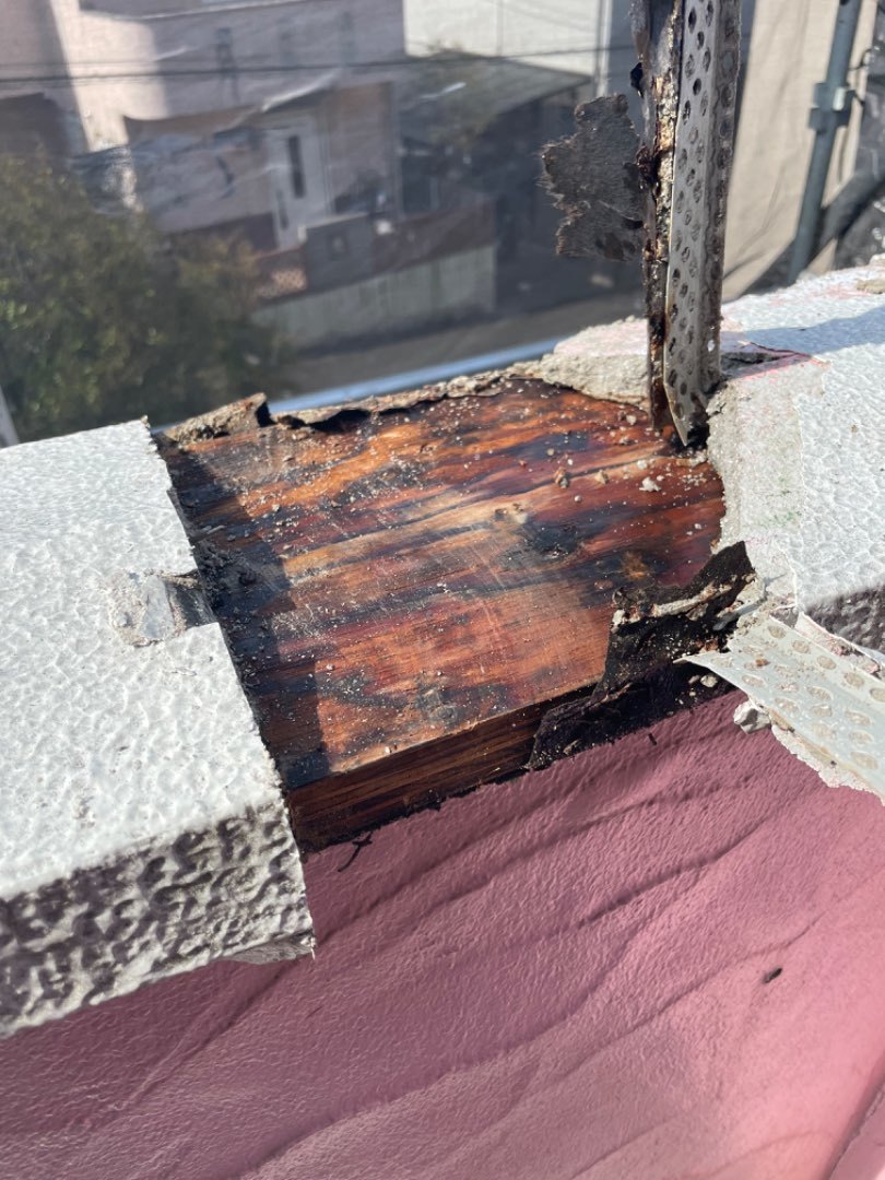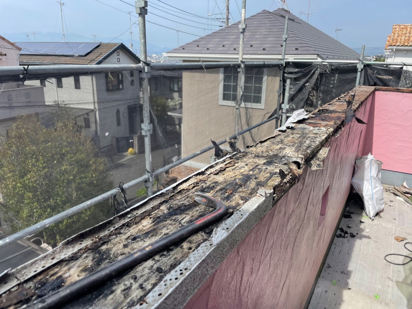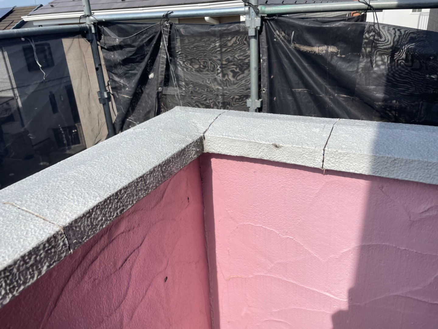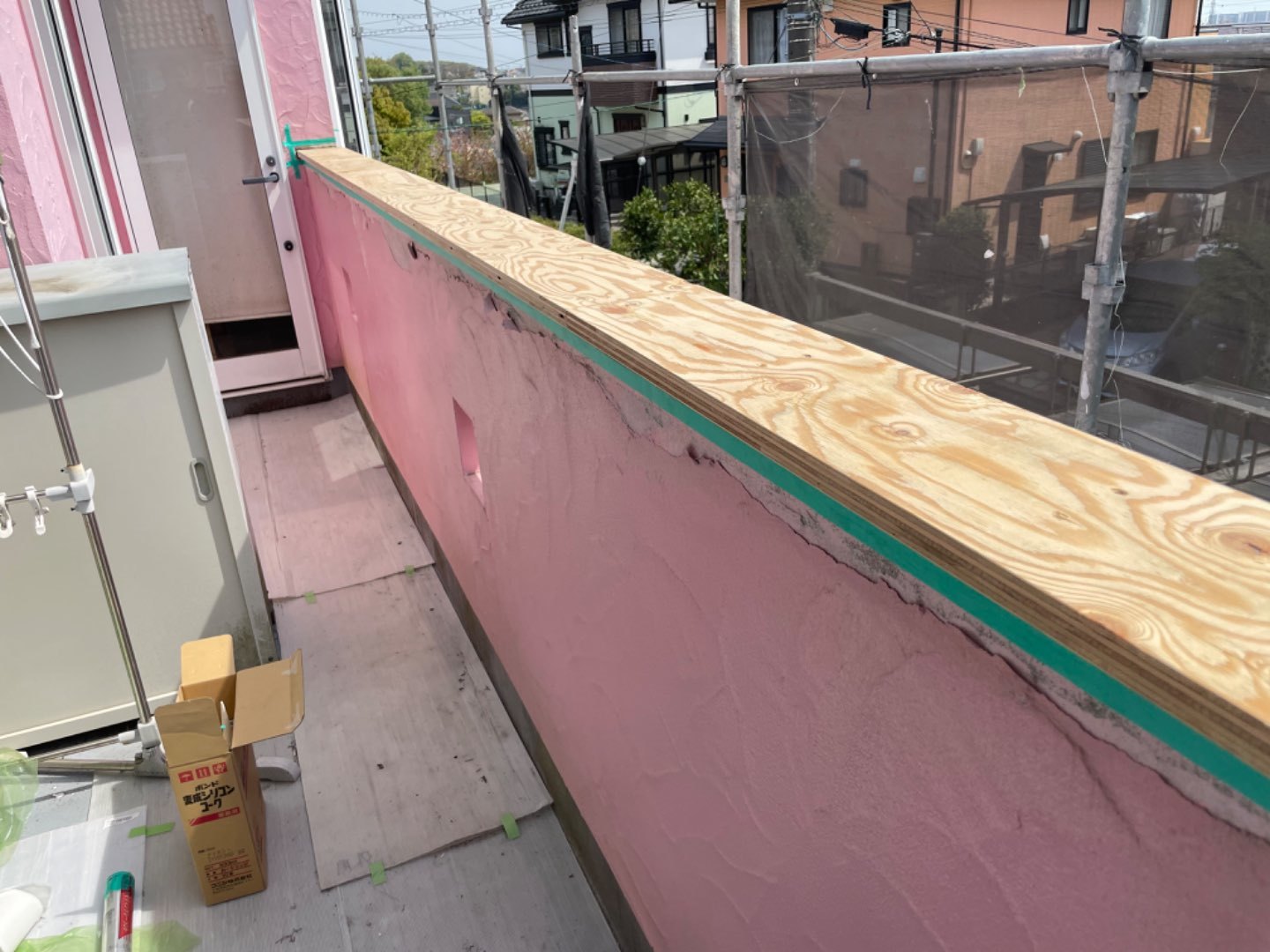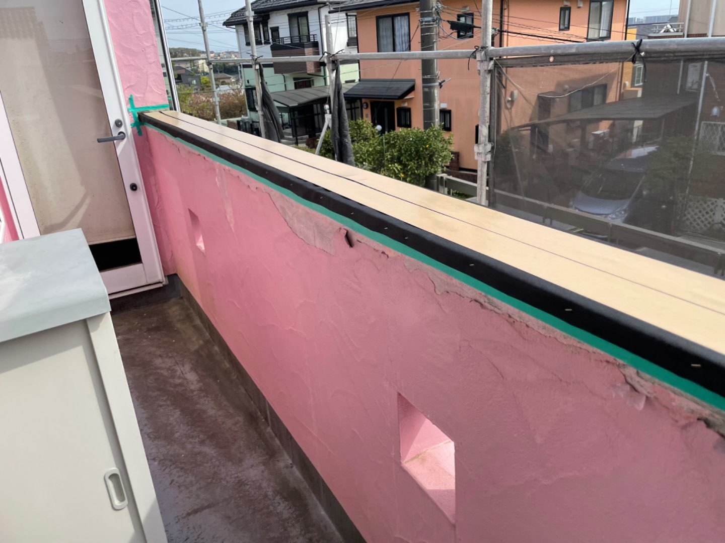 笠木もモルタルから交換するので既存のモルタル笠木を撤去していきます❗️