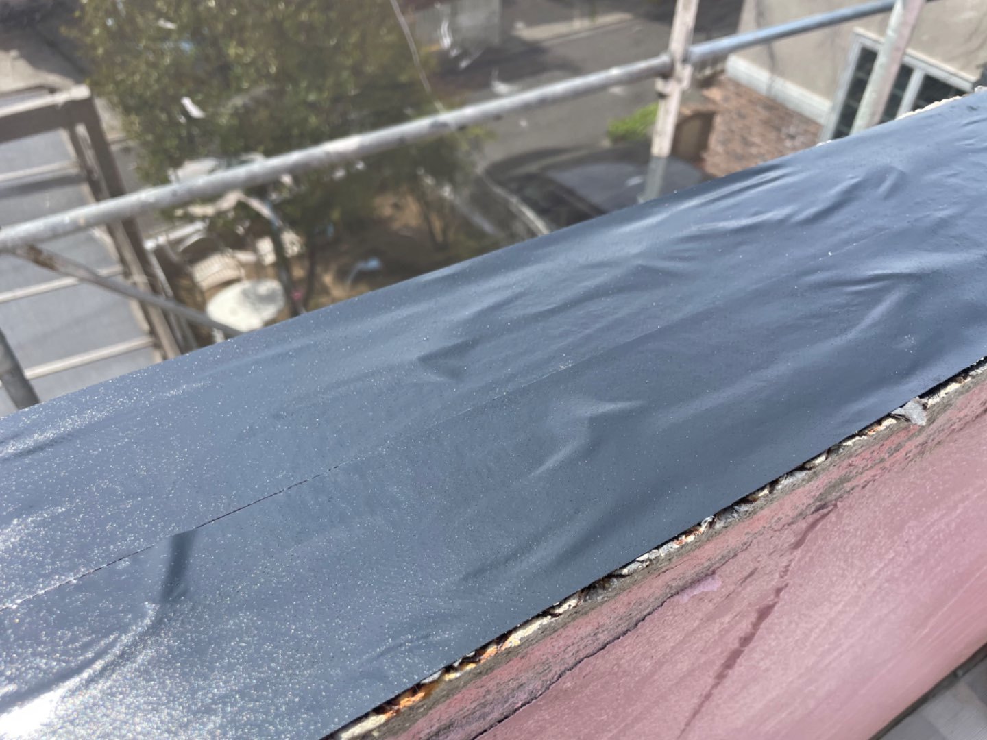 下地上に水切りシートを設置して笠木下地の劣化に備えます😁