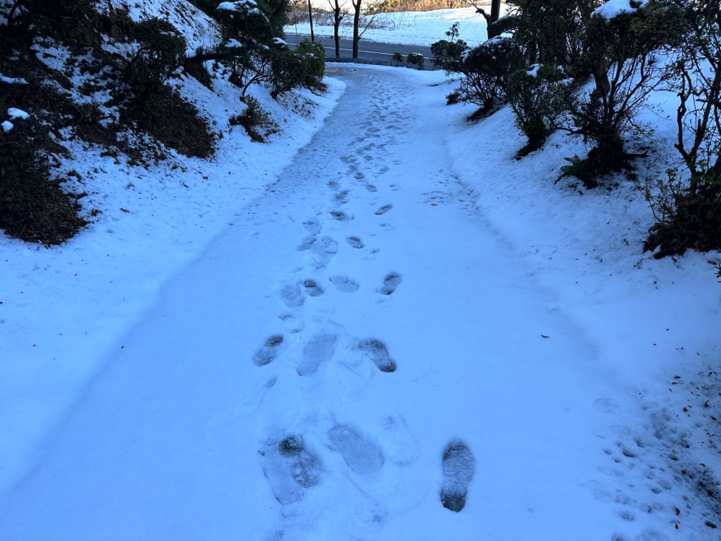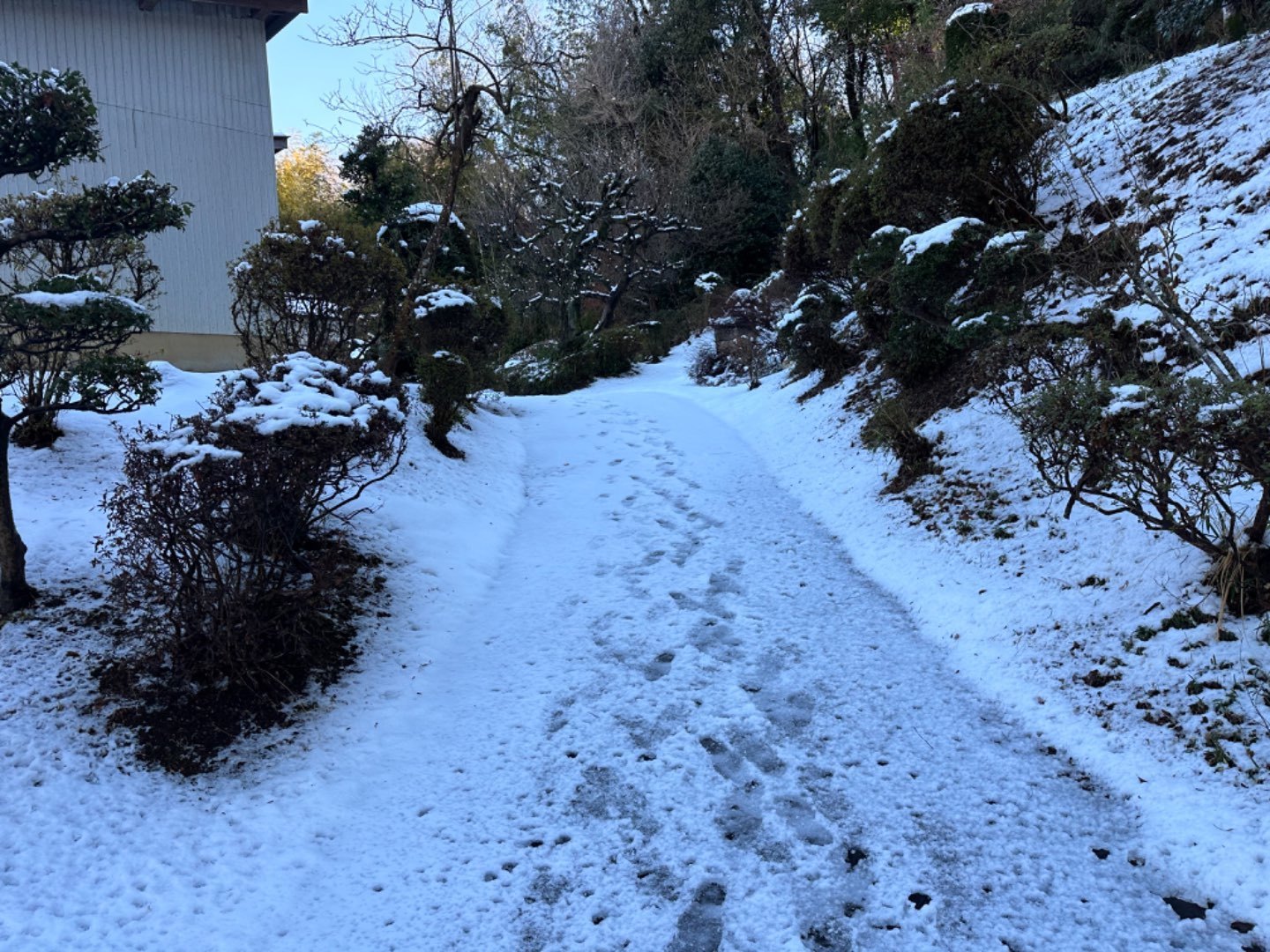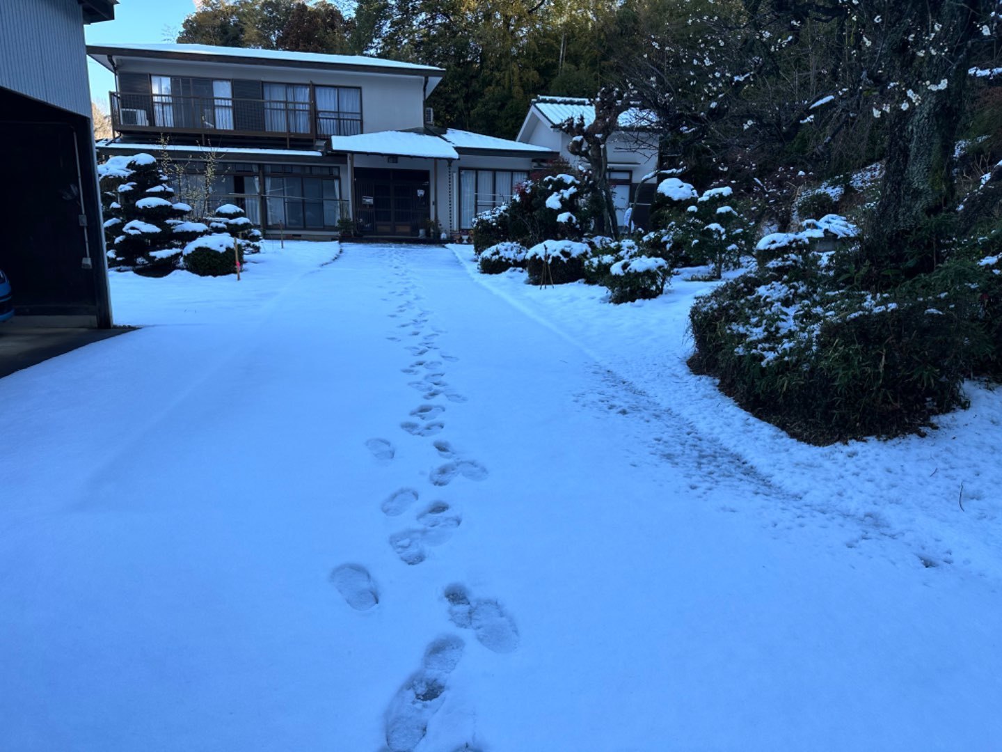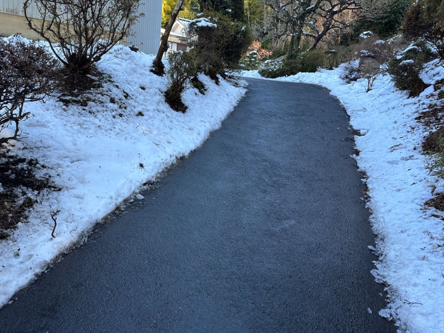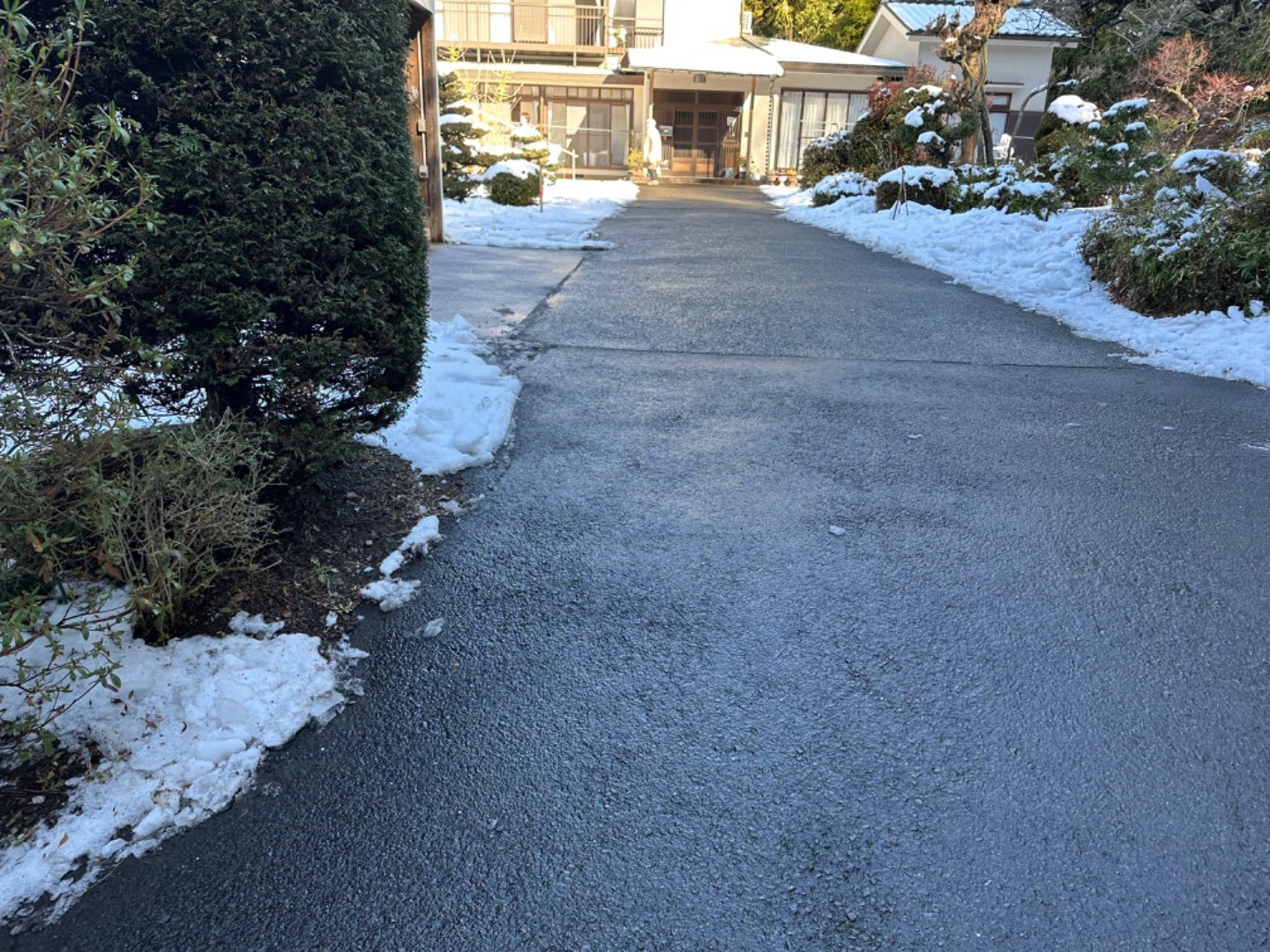 敷地の広いお宅なので、玄関までの道に雪が積もっている状況です。