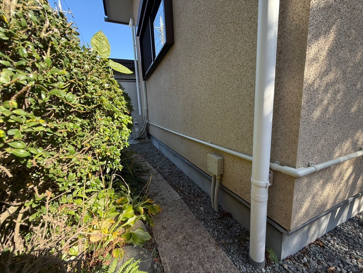 電動へ変更することで電源が必要となる為、室内から電源取ると壁紙の補修や点検口など付帯工事の費用が掛かってしまう為外部電源から配線するご提案をさせて頂きました。