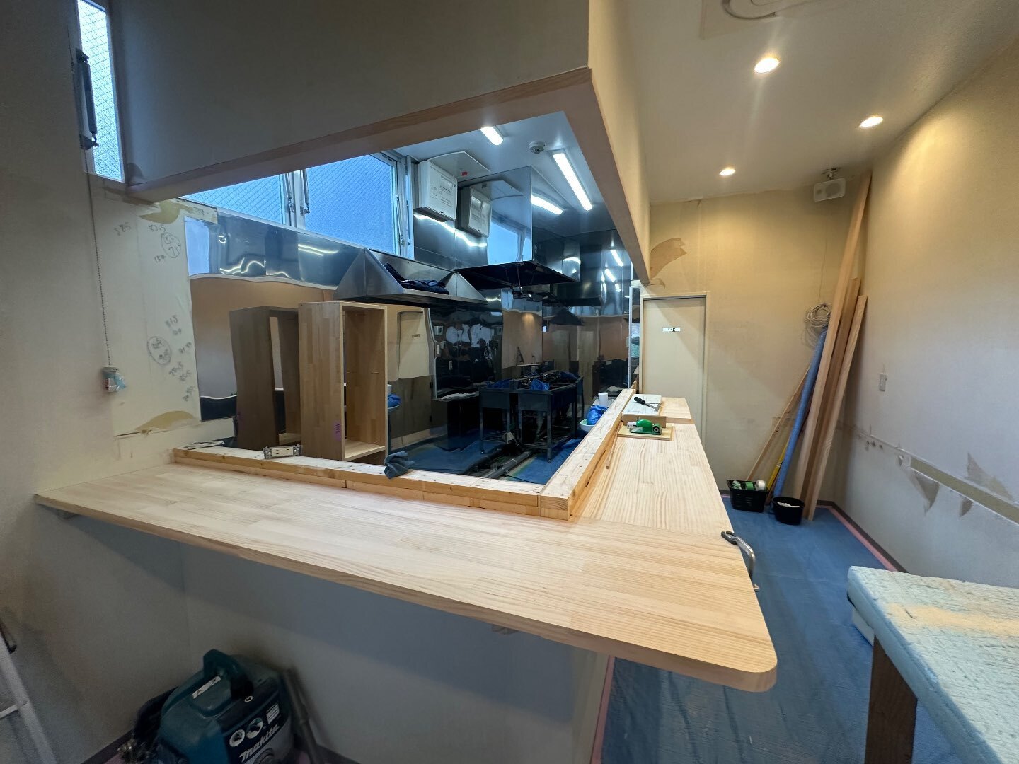 調理場側は火元周りに防火板を設置。