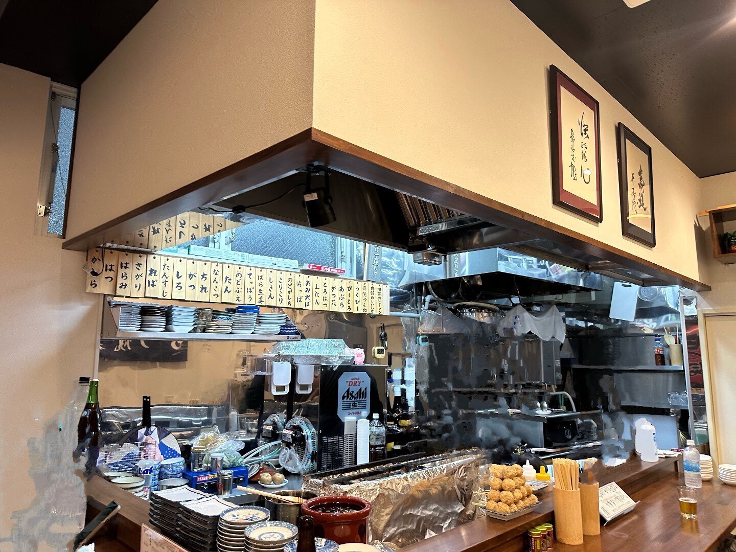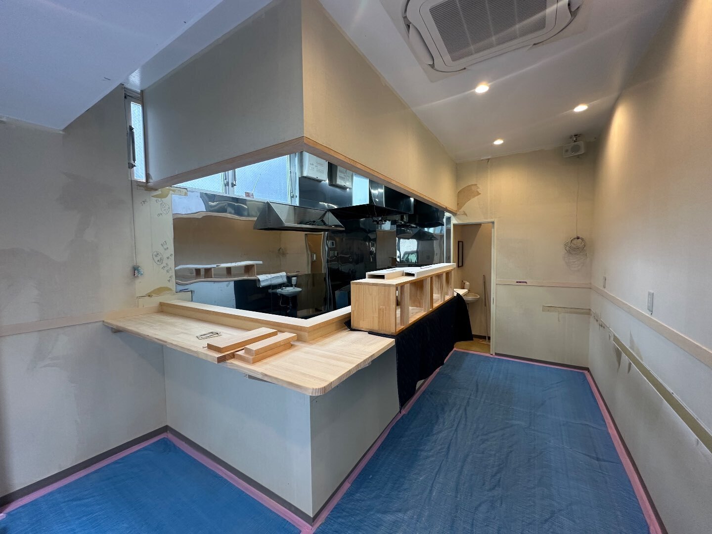 カウンター越しに焼きを見せたいとのご希望でしたので火元上にダクト設備を新設。